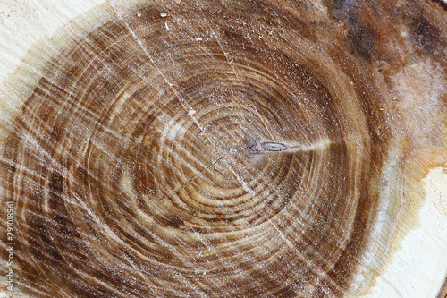 © Stepanych, Fototapeta premium Closeup of tree trunks. Wood texture. Torso with annual rings. Destruction of trees.