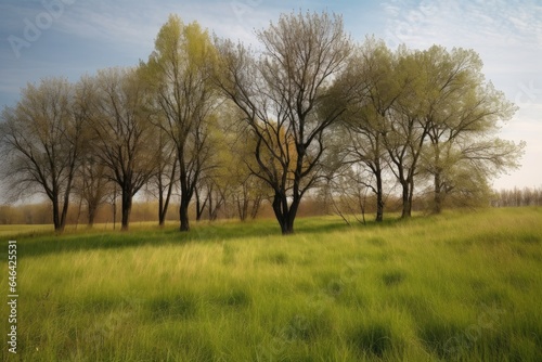 Fototapeta premium closeup of trees growing on an empty grassy field