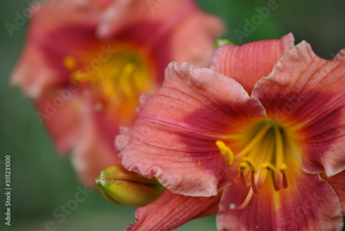 Fototapeta premium closeup of two pink daylily flowers