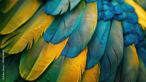 Obraz premium Closeup of vibrant parrot feathers colorful blue and yellow plumage