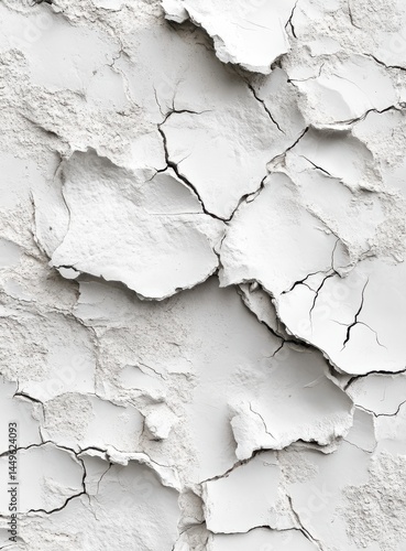 © Yothin, Obraz premium Closeup of Weathered White Wall with Cracked and Peeling Paint Texture