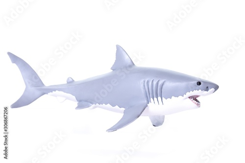 © Alessandro Grandini, Obraz premium Closeup of white and dark gray shark with open mouth