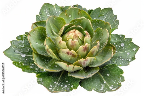 © Grace, Obraz premium Closeup of Whole Artichoke With Leaves Spread out on a White Background Highlighting Its Texture and Freshness. Generative AI