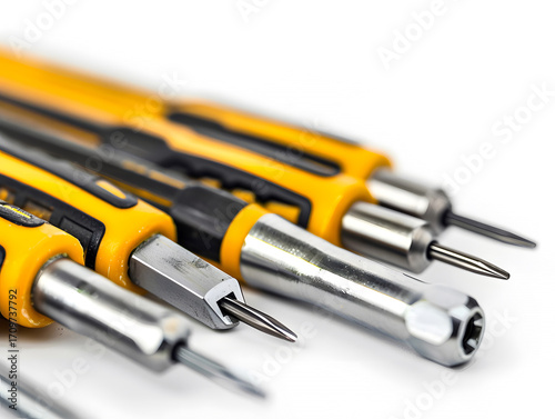 © Innovate Visuals, Fototapeta premium closeup of yellow and black screwdrivers with metal tips