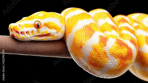 © Kantita, Fototapeta premium Closeup of Yellow and White Snake on Dark Branch