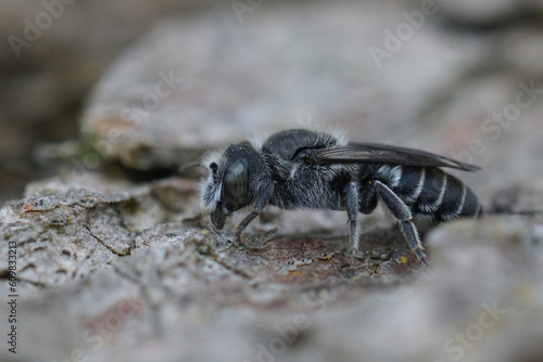 © Henk, Fototapeta premium Closeup on a female Viper's Bugloss hooked small mason solitary bee, Hoplitis adunca