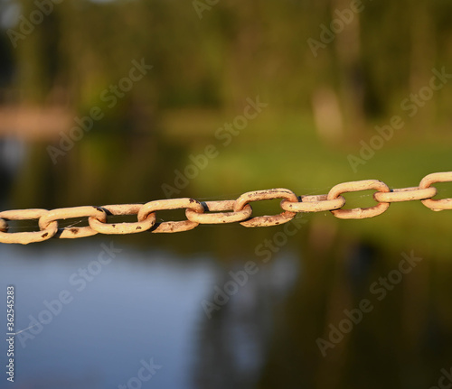 © Jakub, Obraz premium closeup on a hanging chain covered with cobweb