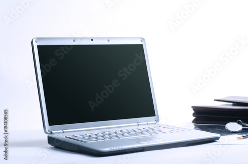 © yurolaitsalbert, Fototapeta premium closeup.open laptop on the workplace of the doctor