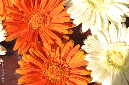 © zzzdim, Fototapeta premium Closeup. Orange and white flower on water