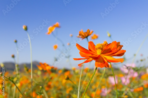 Obraz premium Closeup Orange cosmos flowers or Sulfur cosmos