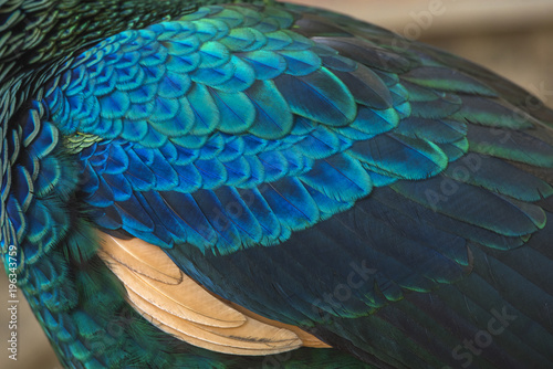 Naklejka premium Closeup peacock feathers (Green peafowl)