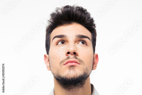 © Drobot Dean, Fototapeta premium Closeup portait of a man looking up at copyspace