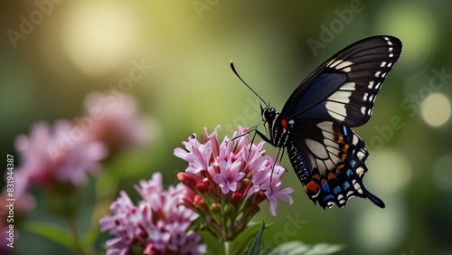 © ArtificialGen, Naklejka premium closeup portrait macro of beauty butterfly on flower