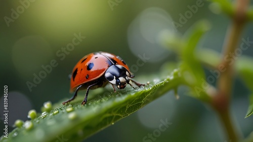 © ArtificialGen, Fototapeta premium closeup portrait macro of beauty ladybug on leaf