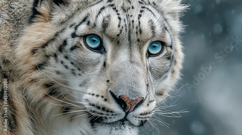 Naklejka premium Closeup Portrait of a Big Cat with Striking Blue Eyes