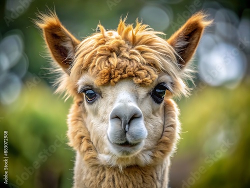 © nilawan, Obraz premium Closeup Portrait of a Curious Alpaca.