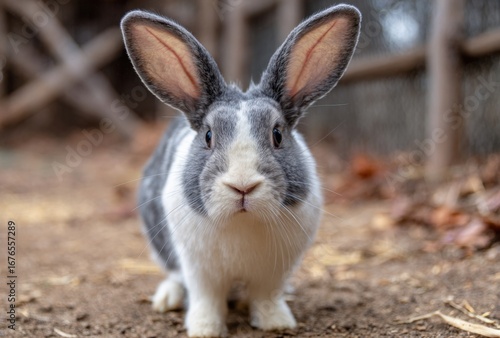 © Yothin, Fototapeta premium Closeup Portrait of a Gray and White Rabbit Outdoors