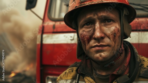 Fototapeta premium Closeup portrait of a male firefighter