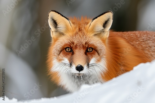 © Balaraw, Fototapeta premium Closeup portrait of a red fox in the snow