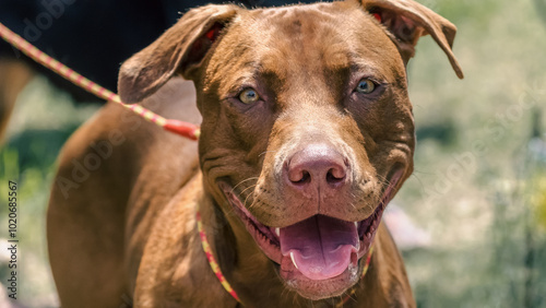 © Sofiia, Obraz premium closeup portrait of a smiling redhead pit bull terrier