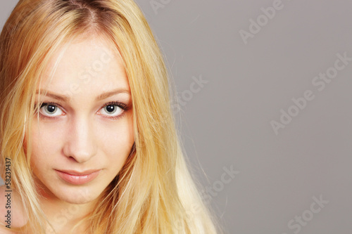 © Drobot Dean, Fototapeta premium closeup portrait of a young blonde girl on gray background