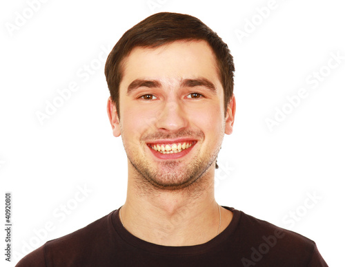 © lenets_tan, Obraz premium Closeup portrait of a young smiling guy, isolated on white
