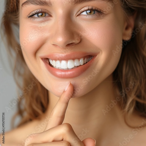 Fototapeta premium Closeup Portrait of a Young Woman with White Teeth Smiling