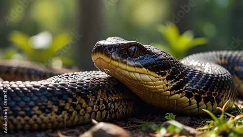 © ArtificialGen, Fototapeta premium closeup portrait of anacoonda snake in nature