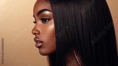 © Ajay, Fototapeta premium Closeup portrait of beautiful African American girl with perfect skin and long black hair. Copy space.