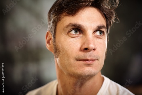 © nyul, Fototapeta premium Closeup portrait of daydreaming man
