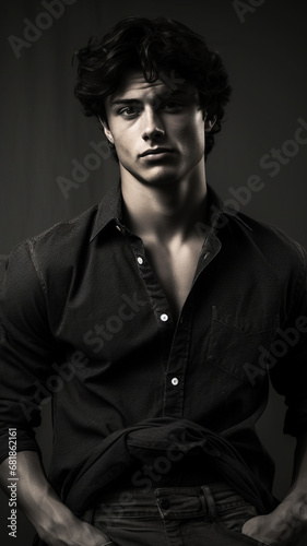 Fototapeta premium Closeup portrait of strong handsome man. a young man in a top