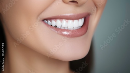 Fototapeta premium Closeup portrait woman smiling with perfect smile and white teeth