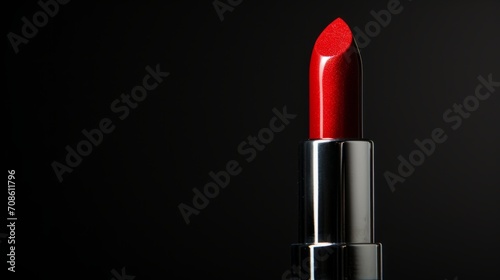 Obraz premium Closeup Red lipstick on a black background in beauty industry photography style