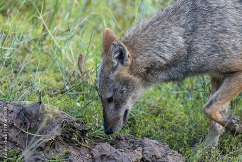 © Wirestock, Naklejka premium Closeup shot of a common jackal in the field
