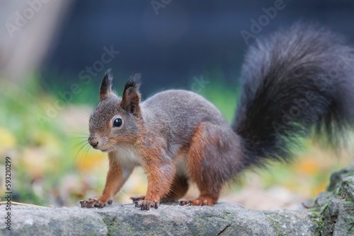 © Andreas Furil/Wirestock Creators, Fototapeta premium Closeup shot of a cute brown squirrel crawling around on a rocky surface