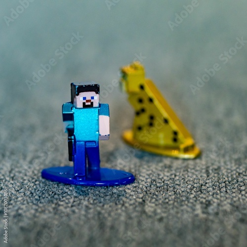 © Everyday Frame, Naklejka premium Closeup shot of a Minecraft Steve toy figurine made of metal