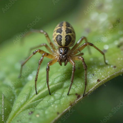 © Hanan, Fototapeta premium Closeup shot of a spider on the green leaf