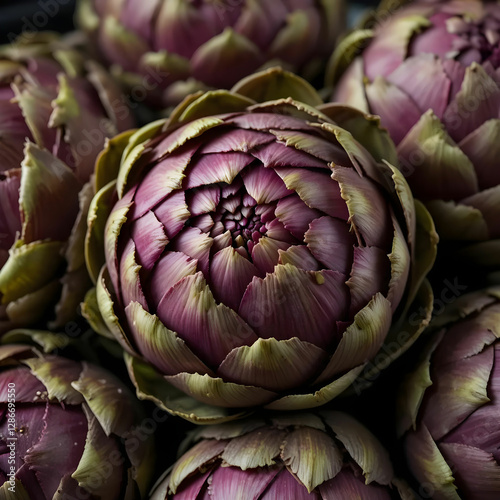 © Hanan, Fototapeta premium Closeup shot of artichokes on a dark background