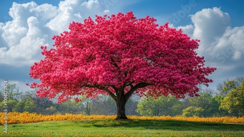 © julija, Naklejka premium closeup shot of blooming maple tree in a botanical garden showcasing the vibrant colors of spring perfect for a seasonal banner with ample space for text
