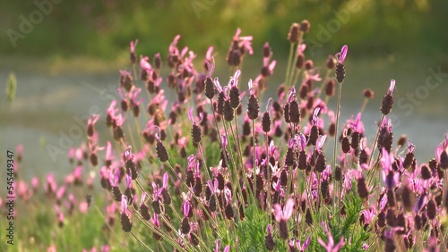 © Jesús Francés/Wirestock Creators, Naklejka premium Closeup shot of blooming purple french lavender flowers on a field