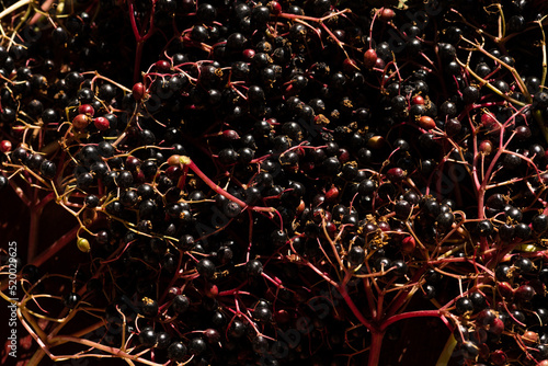 © VIS Fine Arts, Naklejka premium Closeup shot of Sambucus Nigra or elderberry berries harvested during summer.