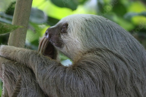 © Wirestock, Fototapeta premium Closeup shot of Sloth from sideview against blur background