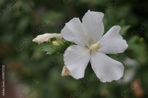 Fototapeta premium Closeup shot of the white Hibiscus Syrian flower