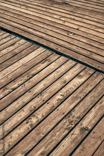 Fototapeta premium Closeup texture of wooden pier boards with natural grain and weathered...