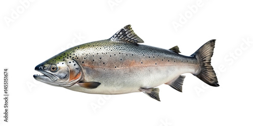 © MdWaliul, Naklejka premium Closeup view of a large Atlantic salmon fish isolated on transparent background showing detailed scales fins and body