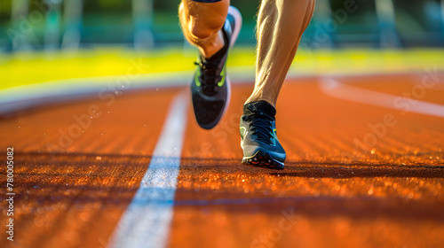 Fototapeta premium Closeup view of a man running on a running track