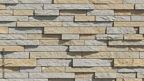 © Nazril, Fototapeta premium Closeup view of a textured brick wall with various colors and patterns 1.