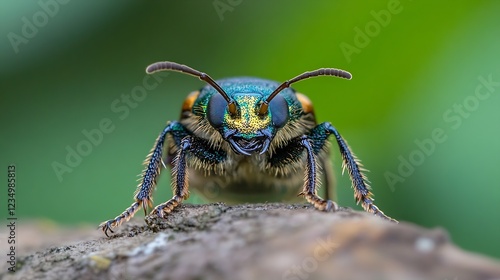 Fototapeta premium CloseUp View of a Vibrant Green Beetle on a Natural Background : Generative AI