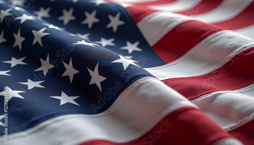© goesti, Fototapeta premium Closeup View Of An American Flag Draped