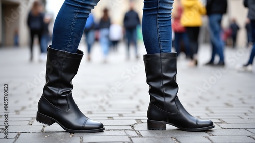 © Giuseppe Cammino, Fototapeta premium Closeup view of athletic woman, denim fashion, jeans, blurred street background